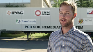 The university research team in collaboration with TransCanada, Innovate Calgary, SAIT Polytechnic and IPAC Services Corp., created a 15-metre-long, mobile cleanup unit that is ready for field-testing on PCB-contaminated soil.