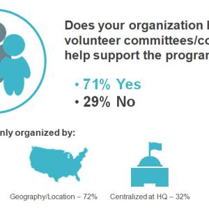 Volunteer Committees/Councils Popular: Along with evidence of lean program staffing, we found that most (71%) programs have build volunteer committees or councils to help support the program manager and localize volunteer activities. Many of these committees are self-selecting groups of employees who are highly engaged in the EVP, and looking for additional ways to play a leadership role. Allowing – and empowering – employees to take this advanced position is not only a way to help ease the pressure from the program manager, but also builds participation by having many “program champions” showcasing their enthusiasm and passion for service.