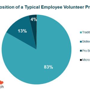 Skilled and Pro Bono are Untapped Opportunities: One surprise from the survey is the low rate of skilled (13%) and pro bono (4%) volunteering reported by participants. While this isn’t necessarily a negative finding, we do see these low rates as an untapped opportunity for companies to grow within their program over time. Particularly with initiatives such as the A Billion + Change pledge and the launch of the Taproot Foundation’s new service to help nonprofits define their pro bono needs – we predict the barriers for companies to participate in these types of service will lessen, and more will begin to take part.