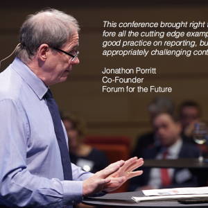 Following a welcome by host Wim Bartels of KPMG and an introduction to the Reporting 3.0 Platform by R3 Co-Initiator Ralph Thurm, the first plenary session focused on the Reporting and Data Blueprints. Jonathon Porritt of Forum for the Future delivered the opening keynote, followed by keynotes from Claudine Blamey of The Crown Estate, Alyson Slater of the Global Reporting Initiative (GRI), and Neil Stevenson of the International Integrated Reporting Council (IIRC) and a lively panel discussion.