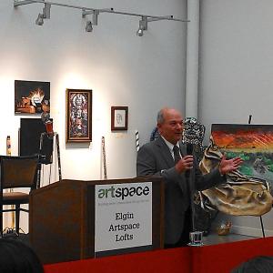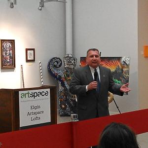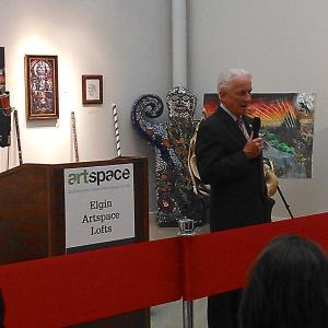 Hosting the grand opening celebration Thursday night at the Artspace Lofts were Illinois State Senator, Mike Noland, 22nd District; Illinois State Representative, Keith Farnham, 43rd District; Kane County Board District 20, Cristina Castro; Elgin Mayor, Dave Kaptain; Former Mayor, Ed Shock; Artspace President, Kelly Lindquist; and Bank of America Merrill Lynch Senior Vice President, Kristine Jurmu. Kevin Kirby, Vice President, Energy Efficiency Programs for AGL Resources represented the Nicor Gas Energy Efficiency Program with his opening remarks. Dozens of artists, community members and local officials enjoyed the food and entertainment as they celebrated a brighter future for the resident artist community and downtown Elgin.