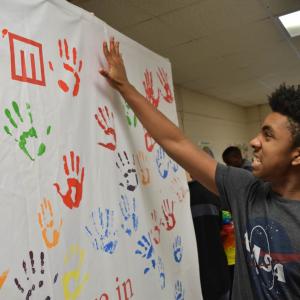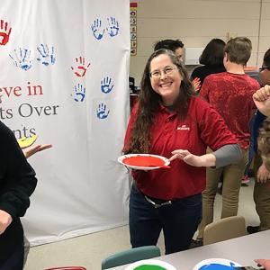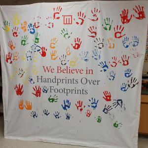 EDEN, N.C., March 15, 2019 /3BL Media/ — Rockingham County students in North Carolina recently joined Mohawk Group and Karastan to commemorate the installation of an on-campus SmartFlower™ solar energy unit with a collaborative hands-on art project facilitated by plant employees. On a canvas backdrop using eco-friendly paint, students from Morehead High School and Central Elementary School covered their hands in different colors and imprinted them around a message embodying Mohawk’s commitment to sustainability: “We Believe in Handprints Over Footprints.”