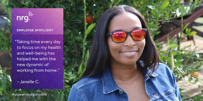 Safety and Well-being are part of the core values at NRG and have always been a priority. As many team members adjust to a new home workplace dynamic, this value has taken on strengthened meaning. Working behind the scenes is benefits analyst, Janelle C., who supports many of our employee programs, including those related to wellness.