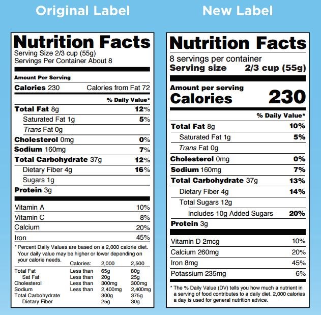 The new labels will no longer list the amounts of Vitamin A and C in the product, because the latest research shows that most Americans are not deficient in these nutrients. Instead, the amount of Vitamin D and potassium will be listed, two nutrients where many Americans diets are deficient.
