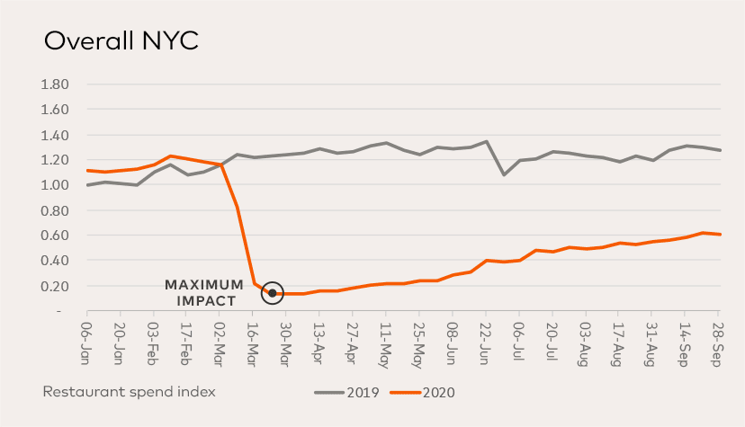 Note: Restaurant spending in Chinatown fell 96 percent by March and began declining 6 weeks earlier than the rest of NYC