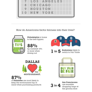 Oakland, Ca., October 1, 2013 /3BL Media/ – It’s Fair Trade Month and the results are in. Philadelphia reigns as the Fairest City in America, according to the 2013 Be Fair Survey, with Boston and Dallas-Fort Worth following closely behind. To kick off Fair Trade Month, Fair Trade USA, the leading third-party certifier of Fair Trade products in North America, celebrates America’s fairest cities and reminds consumers to Be Fair by choosing Fair Trade when they shop.