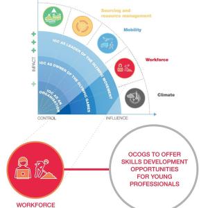 Workforce is one of the five focus areas of the IOC Sustainability Strategy. The IOC sets out requirements for an Organising Committee for the Olympic and Paralympic Games (OCOG) that include the provision of skills development opportunities for young professionals.