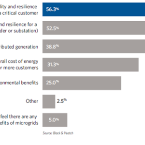 When utilities were asked about the benefits of microgrids, improved reliability and resilience came out ahead, followed by integrated distributed generation, reduced cost of energy and environmental benefits (Figure 2).