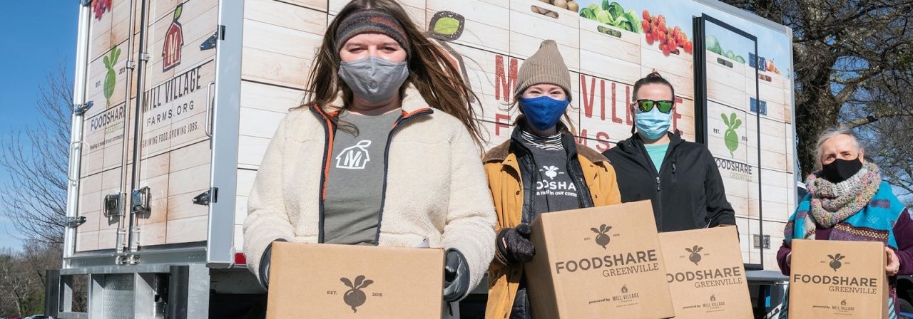 Mill Village Farms is a nonprofit that grows food on vacant properties to supply produce to those who are struggling financially, including communities with limited access to farm-fresh foods. The organization provides produce at farmers markets, as well as through FoodShare Greenville, which supplies discounted boxes filled with a diversity of produce at different agency sites.