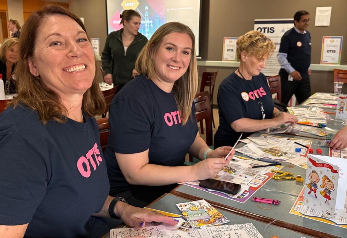 Otis volunteers in Connecticut have been partnering with multiple organizations to help support local communities. In Farmington, CT 100 colleagues partnered with Happy Hope Factory to help assemble STEAM care packages to bring joy to hospitalized children in nearby communities. Otis volunteers helped get over 200 kits assembled and shipped out.