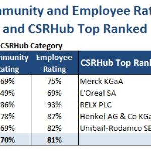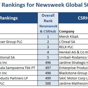 See the Comparison of Community and Employee Ratings for Newsweek and CSRHub Top Ranked Companies.