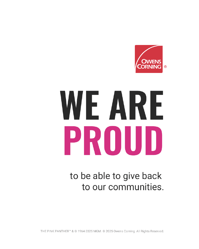 We’re taking time to look back at the many ways Owens Corning has given back in 2024. From our Roof Deployment Project, to our work with the Gary Sinise Foundation, to the many contributions we have made to charitable organizations, we’re highlighting the many ways we work to support our communities. Here's to shaping a better future, together.