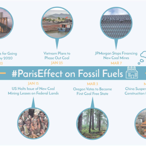 A month after the Paris climate talks, the Obama Administration announced that it would halt new coal mining leases on public lands. Across the U.S., states have also taken action to go coal-free. New York Governor Cuomo pledged to close all coal plants in the state by 2020, and the state of Oregon voted for a complete ban on coal-generated power by 2035. The Paris Effect on the fossil fuel industry has extended to the private sector as well: In January, financial giant J.P. Morgan announced that it would no longer finance coal mines around the world due to the threat from climate change.