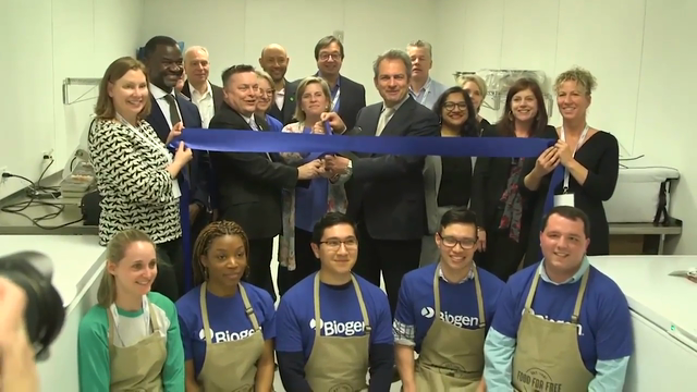 The Biogen Foundation teams up with Food For Free, a local non-profit based in Cambridge, Mass, to build and provide kitchen space, as well as Biogen employee volunteers to help with the program and make meals.