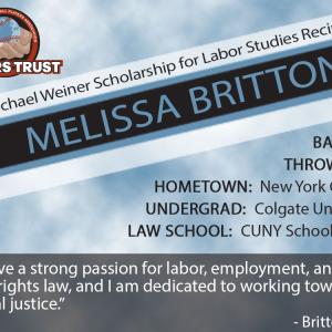 Like fellow recipients of a Michael Weiner Scholarship for Labor Studies, Melissa Britton understands and appreciates the close relationship between worker rights and civil rights that defines organized labor’s important role in advancing social justice.