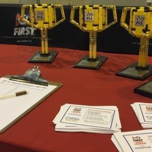 Nearly 400 people gathered together at NRG Park for what we’re calling the “FLL Block Party.” Collectively, we, Booz Allen Hamilton, CSC, Dow Chemical, Jacobs, and Rockwell Collins, along with a few FIRST team mascots, brought our employees, friends and families to celebrate the upcoming season, and lift some of the burden of kit assembly and of course, have a little fun together. Naturally, we’ve tapped into the FIRST spirit of “coopertition” to make things interesting. The day of the event, groups were organized into teams and the team to assemble the most kits – without any missing pieces – received a completely custom-made LEGO® trophy to highlight their serious building skills.