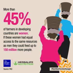 By focusing on solutions that include gender equity and women empowerment, greater impact can be made to reduce malnutrition, food insecurity and hunger. By ensuring women have access to critical resources, global rates of hunger can be significantly reduced by up to 150 million people.