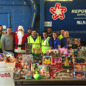 The Philadelphia and King of Prussia, PA divisions of Republic Services collected toys for the Toys for Tots program.