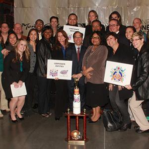 His remarks came during a special event last month, to reveal the results for the 2014 food drive benefiting Three Square Food Bank. The grand total, 1.6 million pounds, exceeded both last year's 922,000-pound total and this year's million-pound goal. The winning team, accounting for the most pounds of donated food per employee, was the MGM Resorts Corporate Entities team, which raised 376,255 pounds, or more than 146 pounds for each employee. Accepting the trophy on behalf of his Corporate colleagues was Chief Operating Officer Corey Sanders.