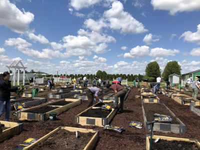 We first started encouraging associates to garden on company property at our Marysville, Ohio world headquarters in 1943 in support of the World War II Victory Garden movement. During that time, Americans were encouraged to grow their own food supply, and we offered associates land on which to grow edible gardens. Flash forward 75 years. Today, our corporate gardens have flourished into 77 raised beds with over 3,000 square feet of growing space. More than 250 associates plant and tend the gardens each growing season.