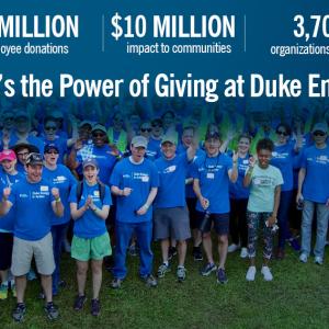 This year, our employees proudly answered the call of service. Through our recently concluded 2018 Power of Giving campaign, Duke Energy’s employees donated $5.3 million to over 3,700 different nonprofit organizations serving our communities. Combined with the Duke Energy Foundation matching gifts, that’s more than $10 million to support our communities. Now, that is powerful. Watch this video to see how our employees are inspired to give.