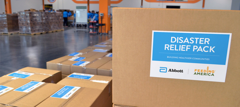 Starting in 2006, we pioneered efforts with Feeding America® and Direct Relief to fill this gap by storing nutrition and healthcare products at clinics and food banks in high-risk areas. These "disaster relief packs" are designed to proactively get the right products, in the right places – before a disaster hits. Ready to be deployed within hours, the packs provide the first wave of aid until traditional relief efforts arrive with ongoing support.