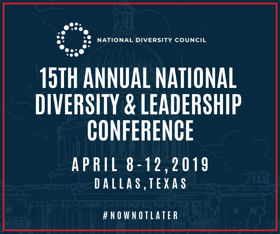 Registration for the National Diversity & Leadership Conference is ongoing and can be completed at nationaldiversityconference.com/2019. For sponsorship opportunities, please contact Dennis Kennedy at dennis.kennedy@nationaldiversitycouncil.org.