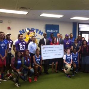 Medtronic and the Minnesota Vikings helped to provide a new weight room and training center for a local Minneapolis high school.