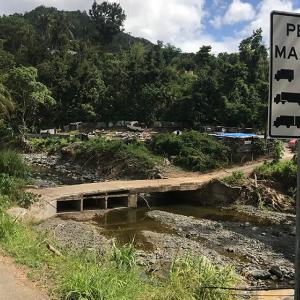 For a month, crews came back to this mountain outside Guayanilla every morning, making progress as they climbed. Along the way, they met interesting locals and amazing situations. They made friends daily, many of the four-legged variety. Dogs have a certain style on the mountain and throughout Puerto Rico. They own the roads, lounging in the sunny middle until an annoying vehicle slowly approaches, asking them to get out of the way.