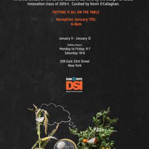 January 10, 2014 /3BL Media/ - MFA Design for Social Innovation at the School of Visual Arts presents “Putting It All on the Table,” featuring a selection of works by MFA DSI students. Curated by Kevin O'Callaghan, department faculty member and chair of 3D Design, the exhibition is on view Saturday, January 11, through Friday, January 31, at the SVA Gramercy Gallery, with a reception on Friday, January 17, from 6:00 to 8:00pm. RSVP for the reception here.