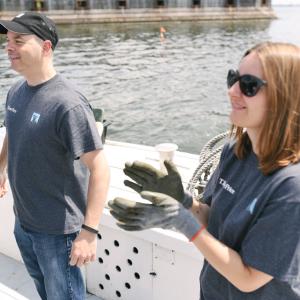 On May 24, they joined volunteers from BGE/Constellation Energy on a boat trip with the Chesapeake Bay Foundation, during which the two teams released nearly 24,000 young oysters at a sanctuary near Fort Carroll in the Patapsco River.