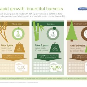 Introducing GreenHarvest* products – a truly innovative offering that incorporates plant-based rapidly renewable fiber, such as bamboo and wheat straw, into trusted Kleenex® and Scott® Brand towel and tissue products.