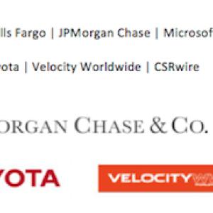 Wells Fargo, JPMorgan Chase & Co., Microsoft, Toyota, Velocity Worldwide, and CSRwire.
