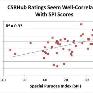 See CSRHub Ratings Seem Well-Correlated with SPI Scores.