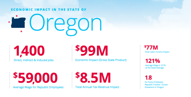 According to the study, Republic’s economic impact in Oregon includes: