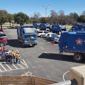 Each month, fifth grade students at Potter's Hand Christian School in San Angelo, Texas choose to be a blessing to someone in the community or organize a mission project. This month, they chose to send care packages to Republic Services drivers, filled with goodies, handwritten notes and bibles for each driver. As a "thank you," the drivers paid a visit to the school, letting students sit inside the trucks and answering questions.