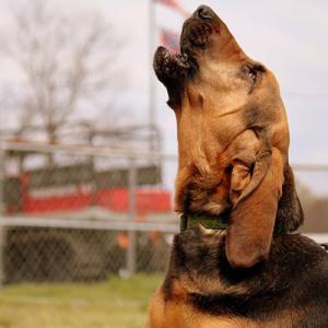 Volunteers from the national group American Black & Tan Coonhound Rescue heard about Maddy’s plight and arranged for her to receive care and shelter in a foster home in Orlando, Florida. Right around that time, Fletcher – who lives with her husband Mike in Southaven, Mississippi, and works full time at Rhodes College – was doing “mantracking” search work as a volunteer and thinking, “Wouldn’t this be so much easier with a dog?” She started looking online for a bloodhound, and her search eventually led her to the rescue group’s website. There she saw a photo of a frail little dog with thin fur, a disheveled look and a spark in her eyes.