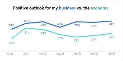 Microbusiness owners are placing greater confidence in themselves. They are less swayed by uncertainty in the economy. Only 39% say they are confident in the national economy. But 74% are optimistic about their business prospects in the next six months. Even among those pessimistic about the economy, one in four plans to hire within a year. Entrepreneurs are making decisions based on business needs rather than on the economy.
