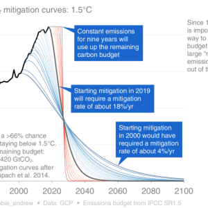 Until that becomes acceptable, I fear that we will remain stagnant in our efforts and that we will move closer and and closer to maxing out our carbon budget. Just because it’s still mathematically possible to achieve the necessary reductions, doesn’t mean that we are anywhere close to being on track to do so.