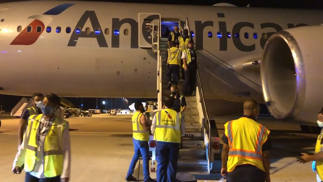 The impromptu pizza run was just one of the many ways American’s team stepped up to care for evacuees on board. Before the first mission took flight, the team at JFK Airport in New York worked to provision the aircraft with everything from pajamas and wash cloths to diapers and teddy bears for children.