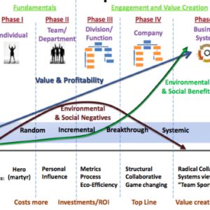 The roadmap series details the Hagen-Wilhelm change matrix, a tool to accelerate adoption and maximize the benefits of sustainable business thinking. This model builds on the work of many thinkers, leaders and researchers who have identified five stages that companies pass through on the way from today’s conventional thinking (Phase I) to a more sustainable future where business thrives by solving some of the worlds biggest problems. Earlier posts tried to help organizations get started by making that critical first step: Phase II. And then offered tips and insight into moving on to Phase III and Phase IV.