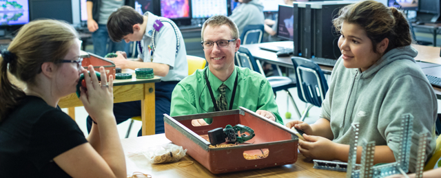 But his kids have been making it work, and they’re even excelling in areas he never could have anticipated. Kids who might struggle in other classes are naturals at things like building and programming. And students who might otherwise never engage with each other or get along are working together.