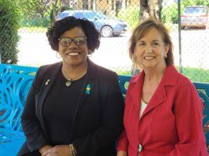 Following the check presentation by Teresa White, President of Aflac U.S., Aflac and Lexington officials unveiled the Aflac park bench, donated to Kids Playce park as a place for rest and reflection with hopes that residents who may be affected by health and financial challenges can find peace and comfort.