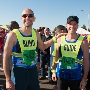 Thomas, who works at the National Industries for the Blind, helps find jobs for the blind, and is a supplier to Boeing. It’s this relationship with Boeing that led him to finding his race partner, Nick Abramczyk. Nick, a Boeing employee, offered to guide Thomas through the race. They trained using an elastic tether, and code words for direction.
