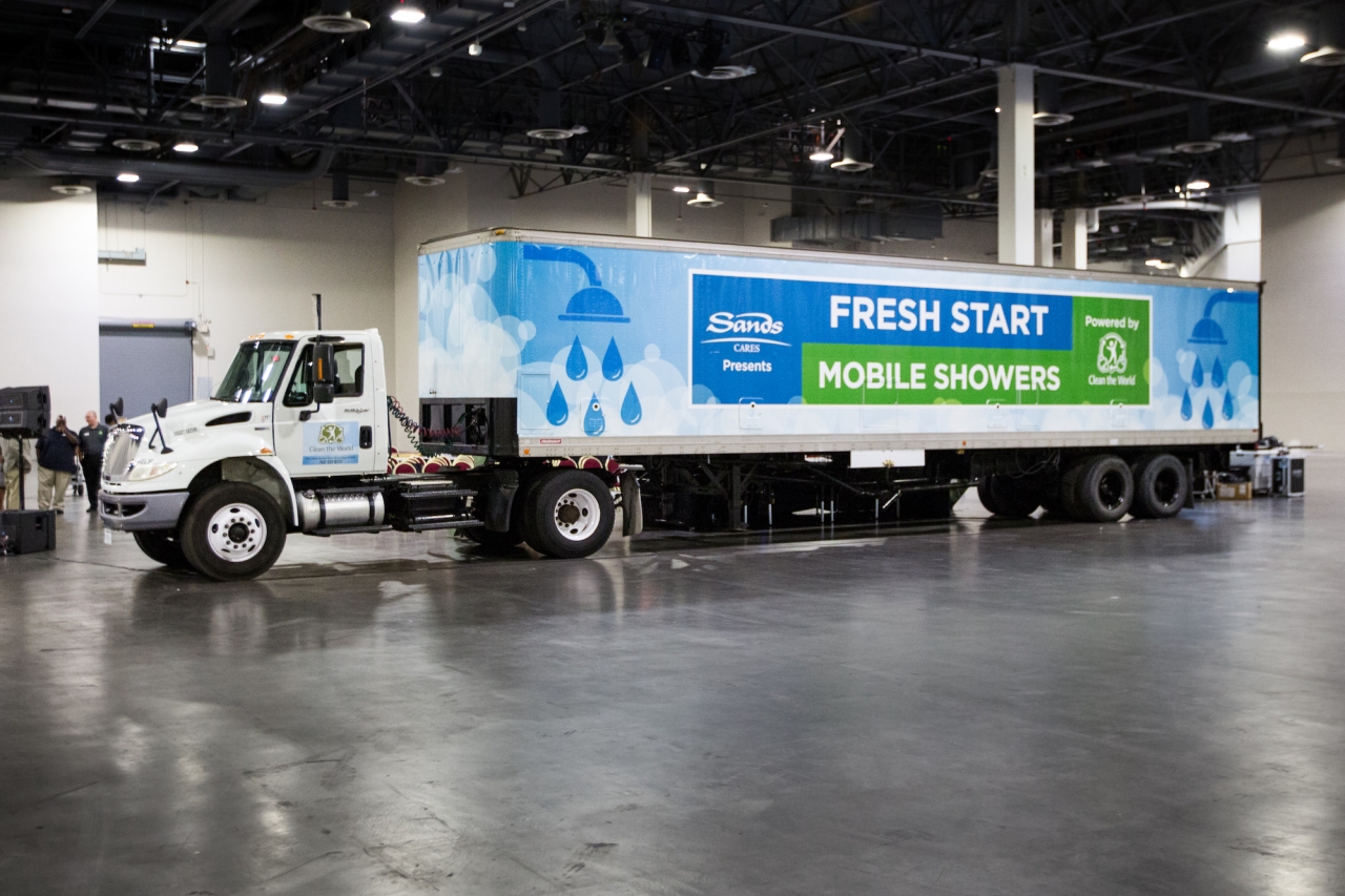 Las Vegas ranks sixth in the nation with the largest population of homeless individuals among major cities and is also known to have the third highest number of unaccompanied youth, according to reports by the U.S. Department of Housing and Urban Development (HUD). In order to provide immediate relief and resources as an active approach against homelessness, Las Vegas Sands partnered with Clean the World through Sands Cares, its corporate giving program, to launch the “Sands Cares Fresh Start Mobile Showers” in July 2017.