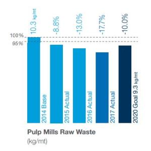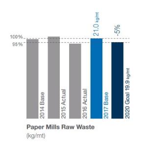 In our paper mills we’ve established a 5 percent reduction goal, whereas our pulp mills are targeting a 10 percent reduction in material losses (which we measure in mill process sewers before these streams enter our on-site treatment plants). At the beginning of 2017, we discovered a measurement error that impacted the historical paper mill losses, and we are therefore restating the baseline using the 2017 data.