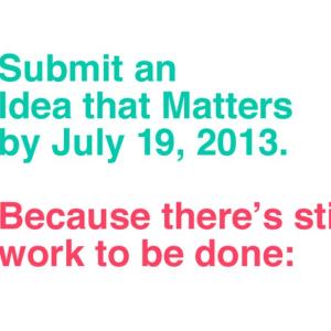 Individual designers, design firms, agencies, in-house corporate design departments, design instructors, individual design students and design student groups can apply for an Ideas that Matter grant. The designer or the nonprofit must be based in North America. Grant awards range from $5,000 to $50,000 per project. At least a portion of the project must be printed, though additional elements may include a variety of communication mediums. And, for the first time in 2013, proposals may include up to 10% of the total budget as an honorarium for the applying designer or design firm.