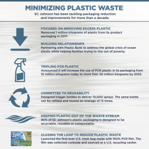 With the increasing attention on the global plastic waste crisis, SC Johnson also published its commitments and progress to further reduce its own plastic footprint, as the company has been relentlessly focusing on designing unnecessary plastic packaging out of its products for years. The company announced plans to boost recycled plastic content in its packaging and support reuse of plastic bottles through concentrated refills, and launched an effort to make Ziploc® bags recyclable at curbside.