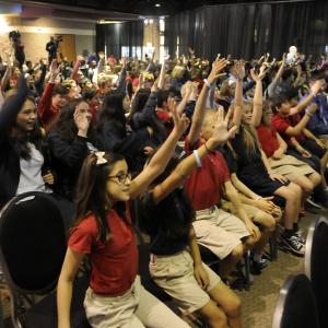 At the celebratory event today, the essay winners and their classmates heard from myFace, a nonprofit organization dedicated to transforming the lives of patients with facial differences. The myFace representatives spoke to the importance of kindness and inclusion, themes which are featured prominently in “Wonder.” The students were also treated to a special performance by DJ Livia and the Monster Kids, a hip-hop dance group from Chicago that has been featured on “The Ellen DeGeneres Show,” “America’s Got Talent” and the “Steve Harvey Show.”