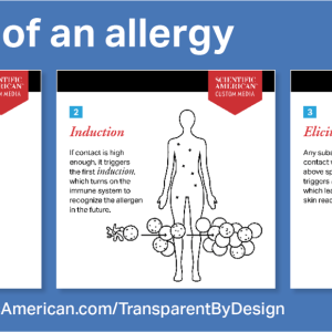 Skin allergies can be created or induced when a non-sensitized person is exposed to an allergen over time and above a certain minimum dose. This is called “induction.” After a person develops a skin allergy to a given substance, they may have a reaction like redness or a rash. This is called “elicitation” and occurs even when coming into contact with that substance at a lower level or from a different source. SC Johnson takes care to use ingredients with potential skin allergens only in amounts so low that it would be highly unlikely to create a new skin allergy or trigger a skin allergy reaction.